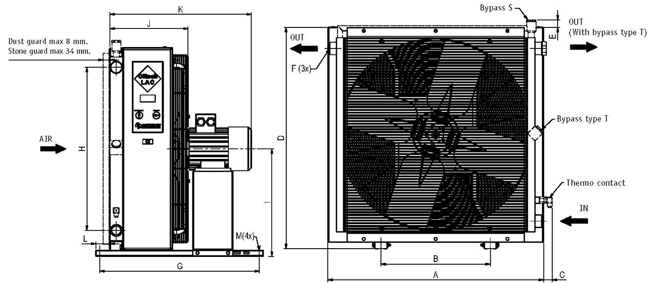 The air flow of the cooler has been optimized by the use of a more efficient axial fan and a variety of housing modifications. The cooler can also be used in the bypass flow by attaching a boost pump An additional filter enables continuous filtration of the medium; the cooler can then be connected as required
