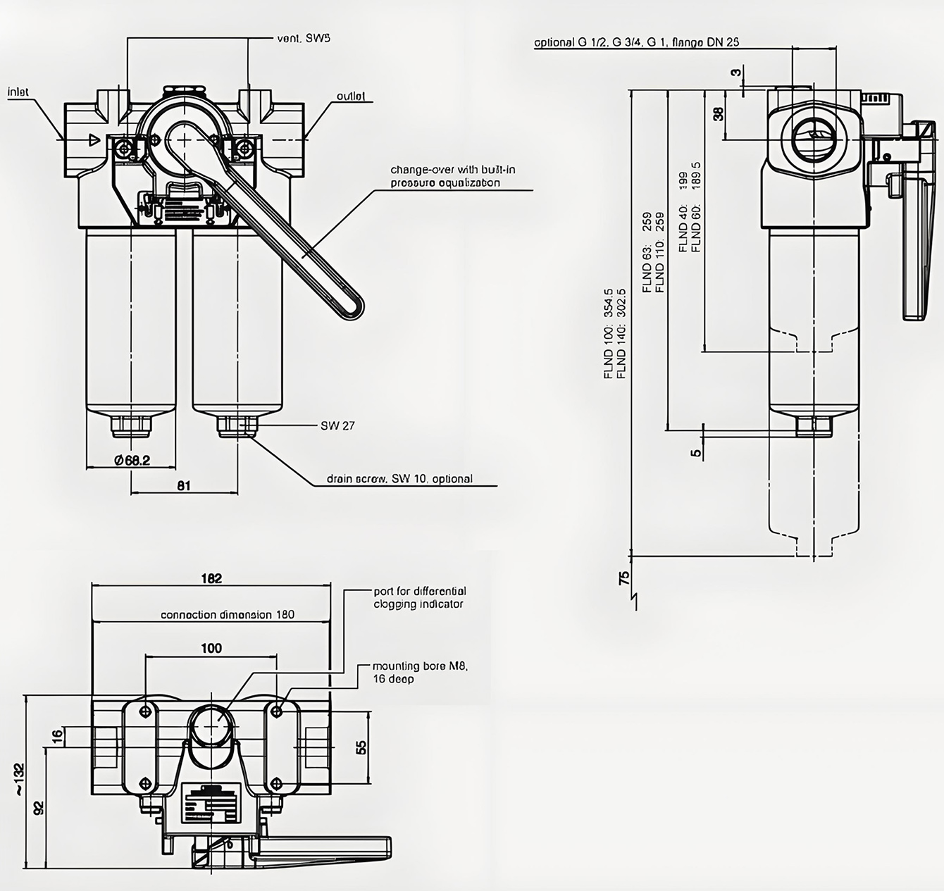 Material of filter bowl | Aluminium (FLND 100 and 140: Steel) |