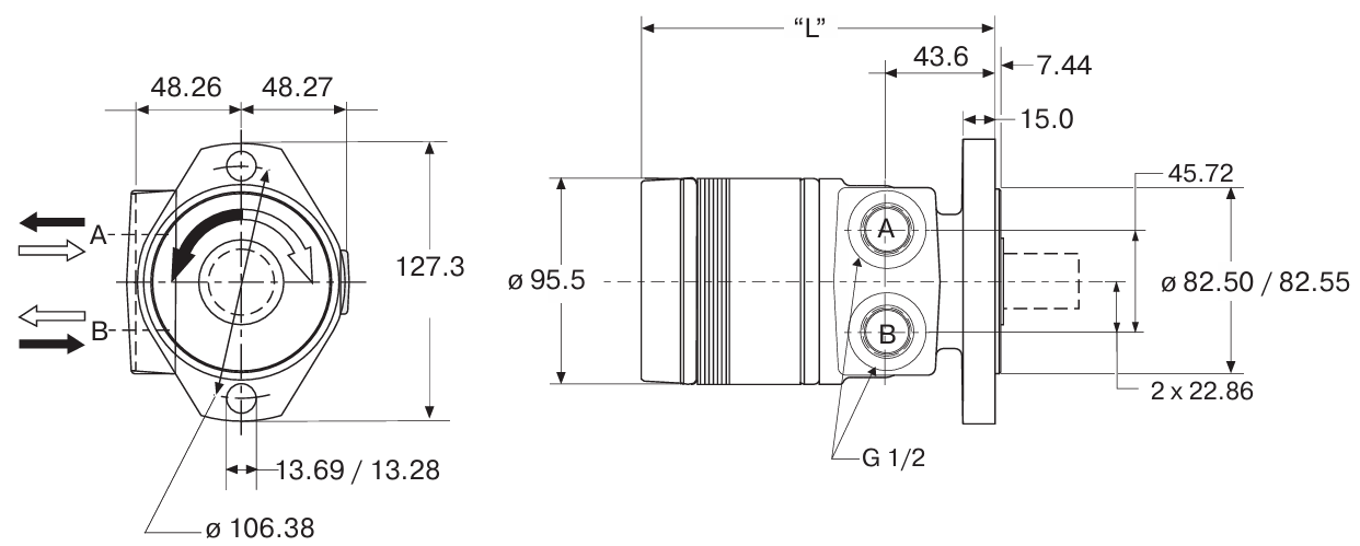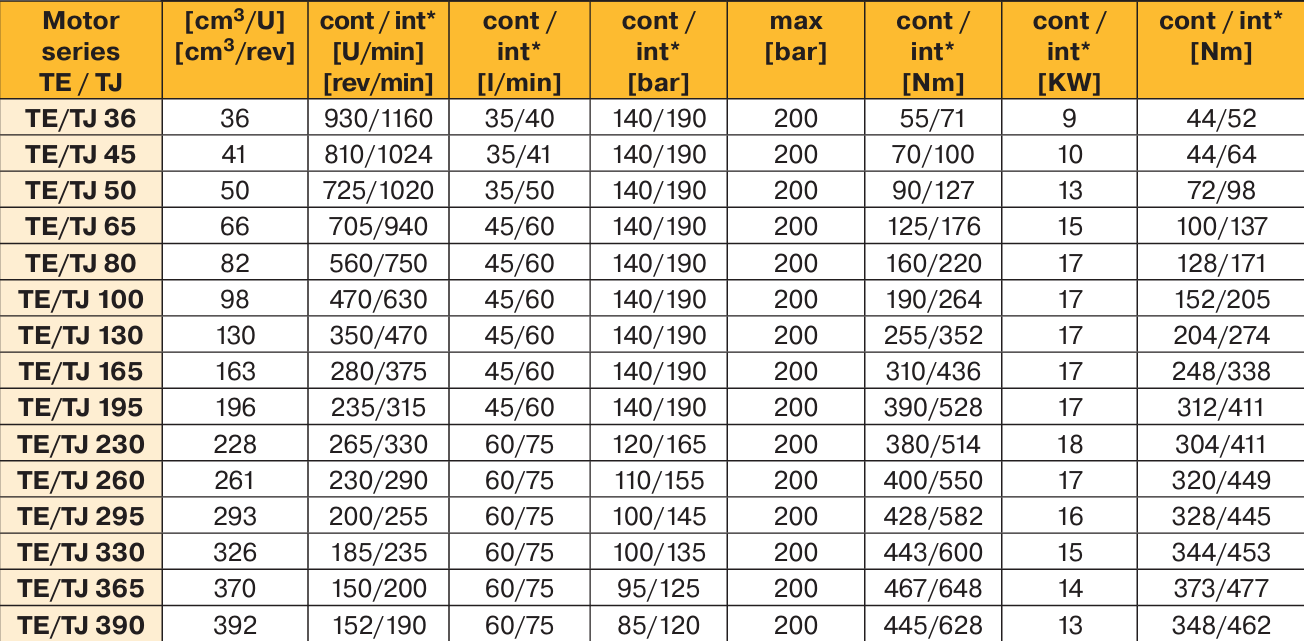 The TE series motor is a durable hydraulic motor with excellent lateral load capacity, high-pressure seal for the shaft, and smooth low-speed operation. It is very suitable for light-duty applications, such as vehicle propulsion, augers, chain drives, winches, and boom rotation. The TE series motor has a nominal shaft diameter of 25.4 mm and roller bearings, with a maximum dynamic lateral load that the key can withstand being 6672 N, and an intermittent working pressure of 190 bar, with a torque of up to 648 Nm. The TE series motor is a robust, low-speed high-torque (LSHT) cycloidal motor, featuring a sturdy structure, continuous hydraulic oil flow through the internal spline, which extends its service life, outstanding lateral load capacity, and smooth ultra-low-speed operation characteristics. The high-pressure shaft seal is standard, designed to eliminate the need for casing oil leakage. Stability is based on high-quality design and manufacturing.